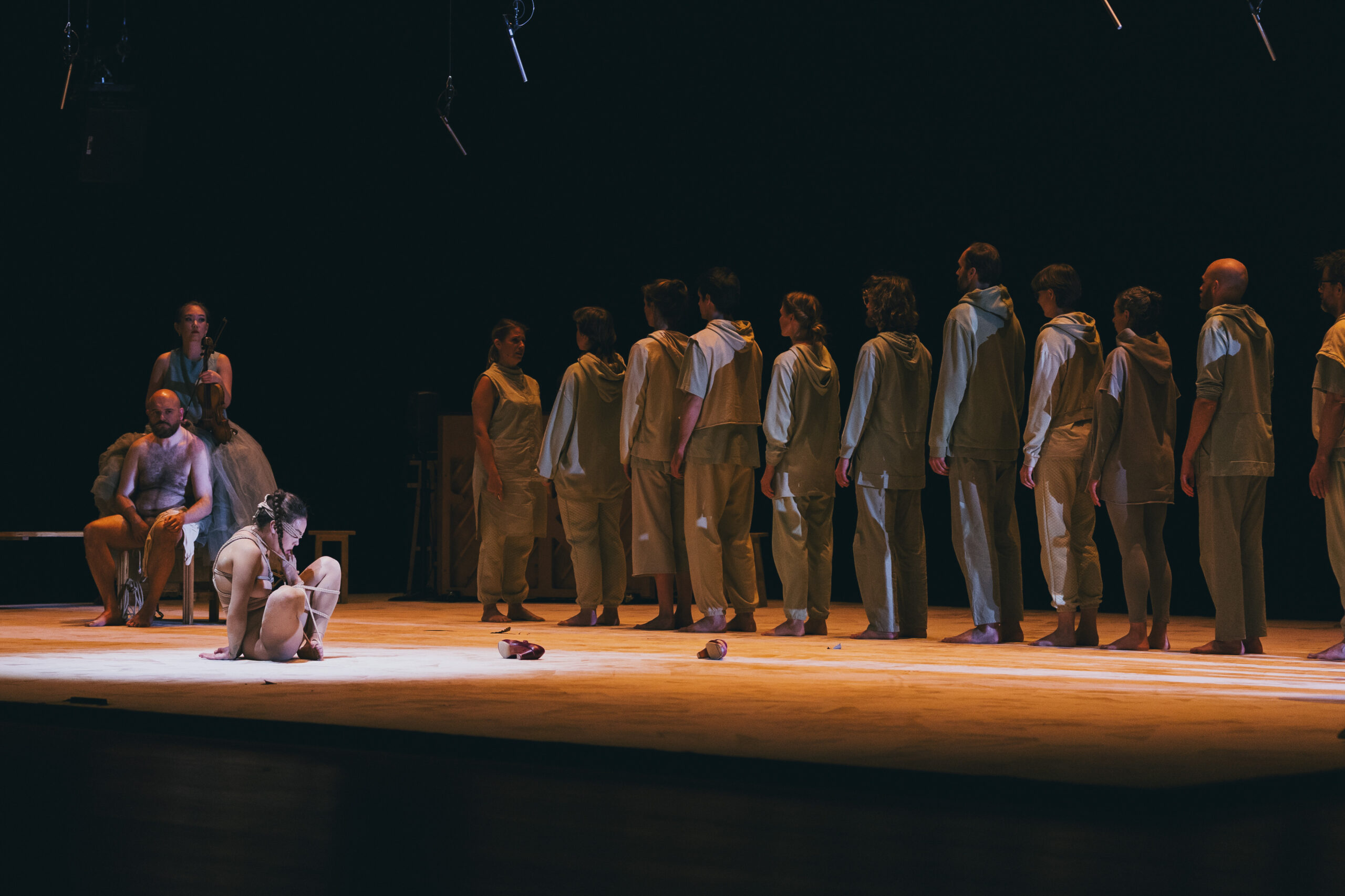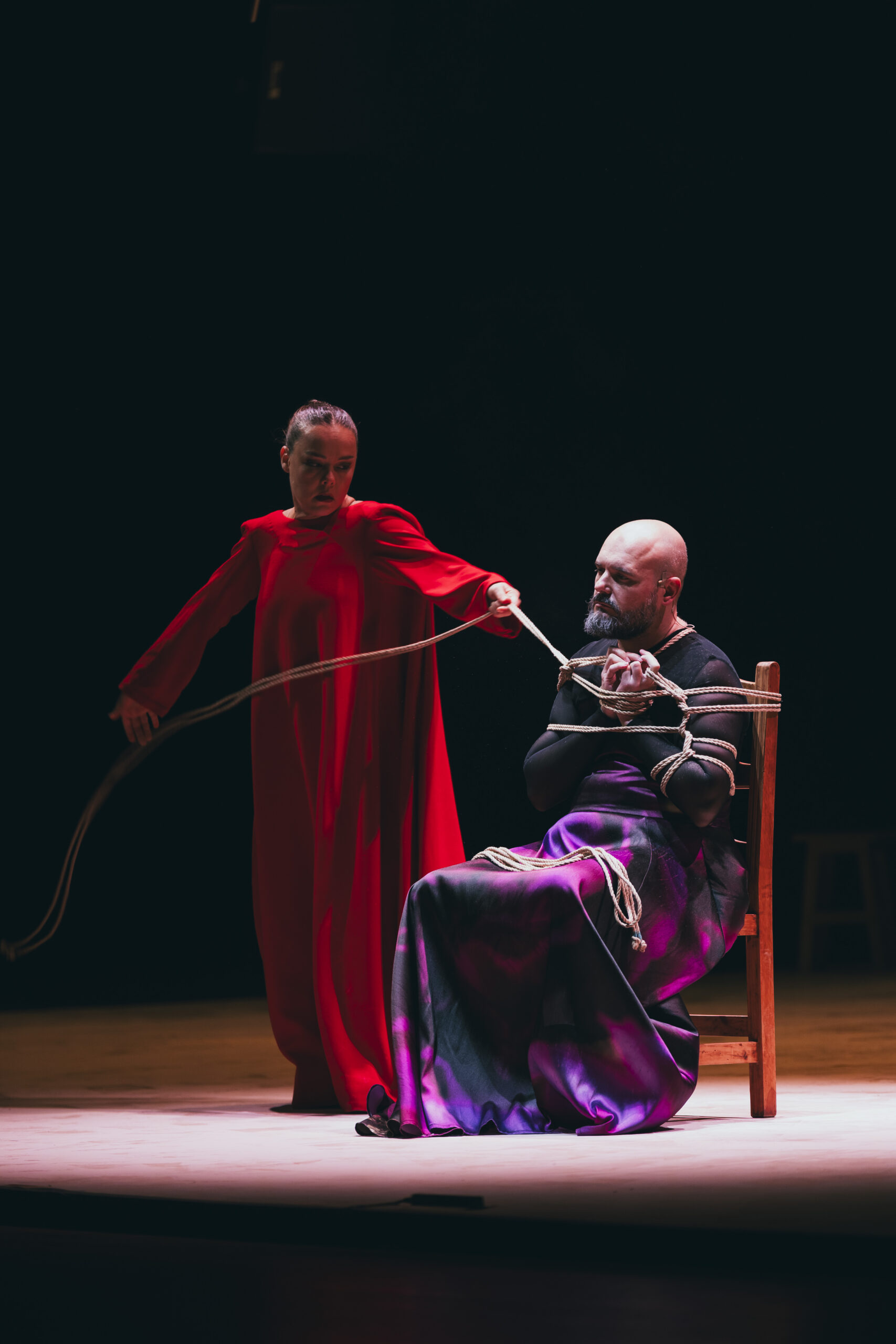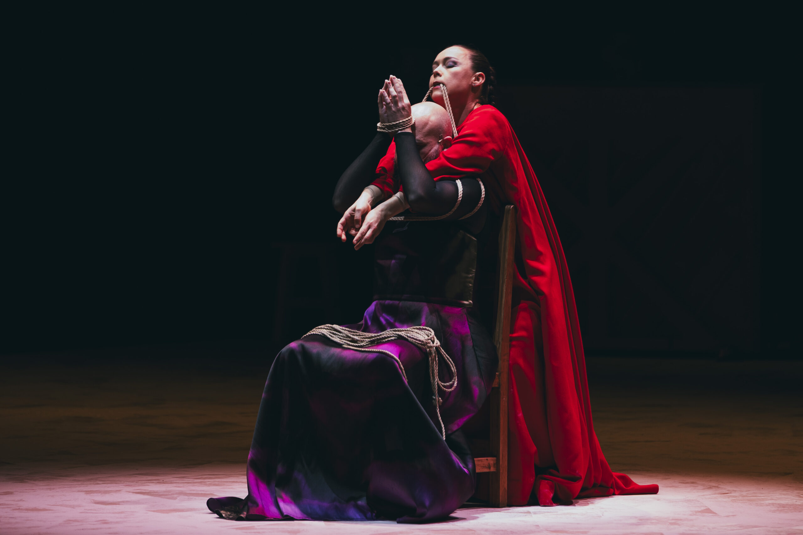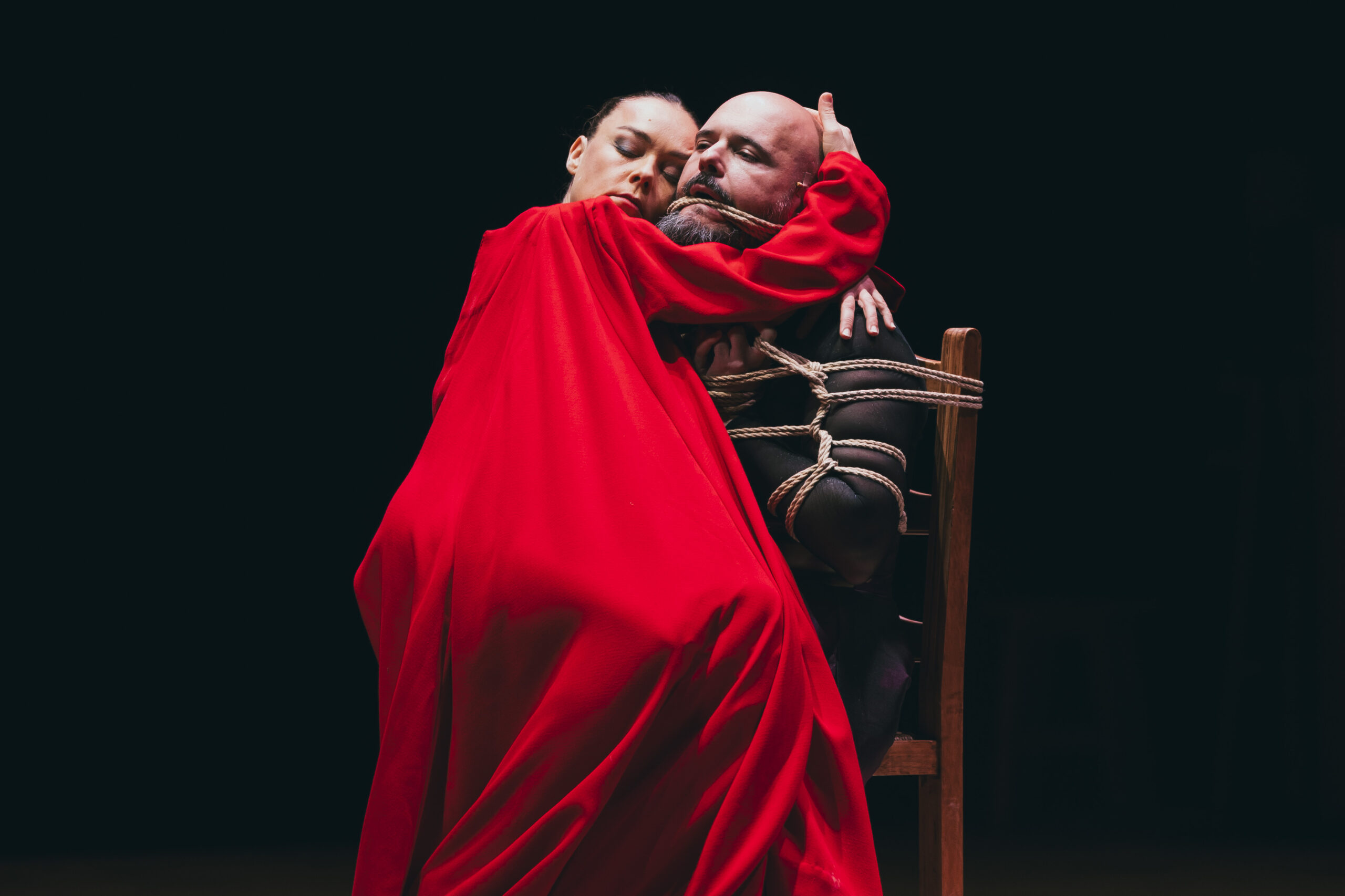 In Carnación, Molina ties together flamenco, religious choir music, electronic soundscapes and Shibari, the Japanese bondage technique. Her dancing body encounters the singing body of Niño de Elche, drifting along to his impulses, moving between eroticism and cruelty, remorse and frustration, domination and submission, sadness and tenderness.