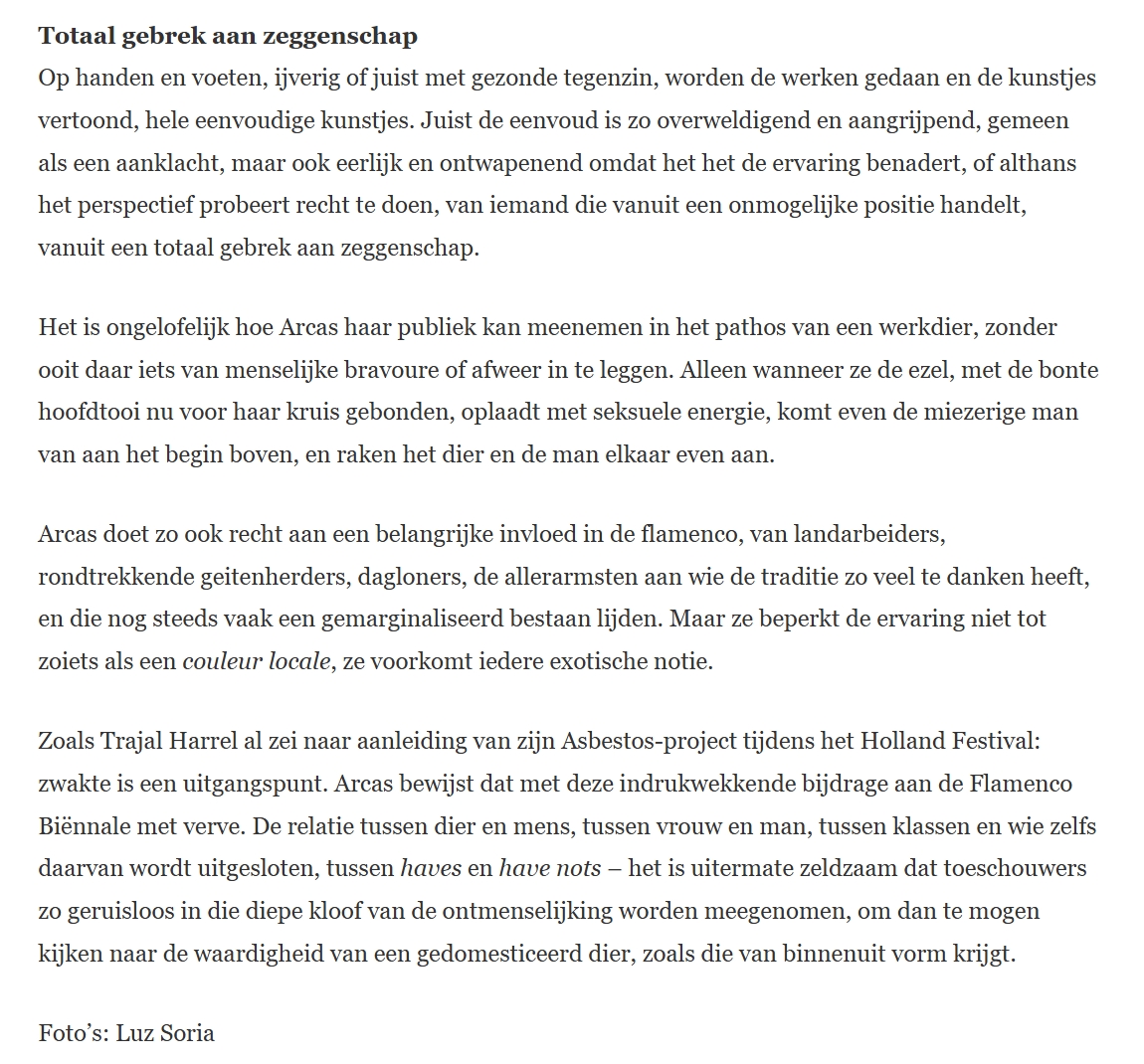 Arcas neemt publiek op zeldzame wijze mee in het pathos van een werkdier